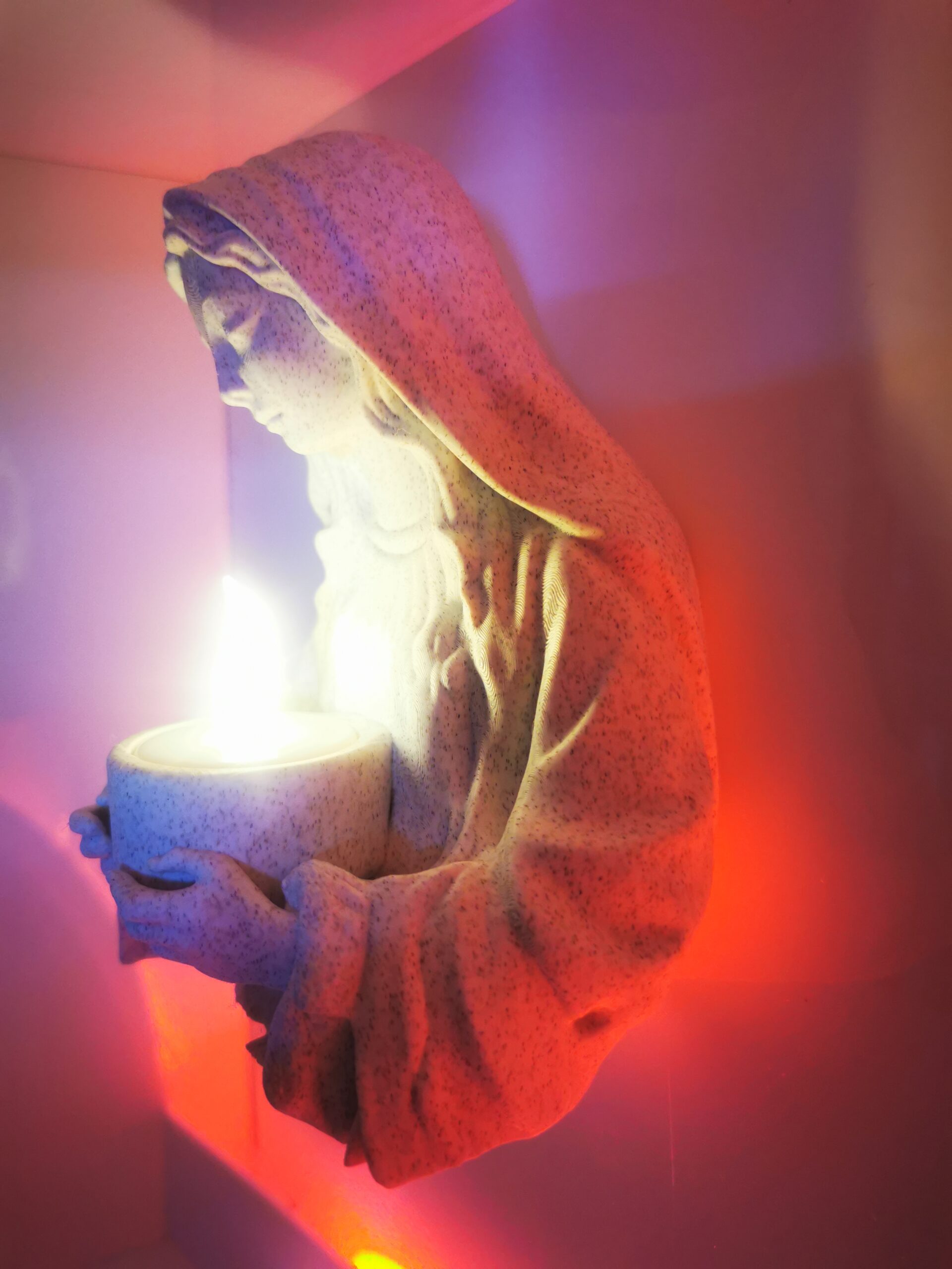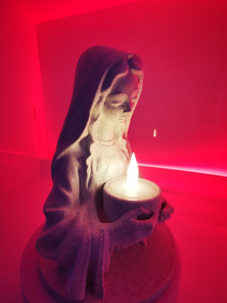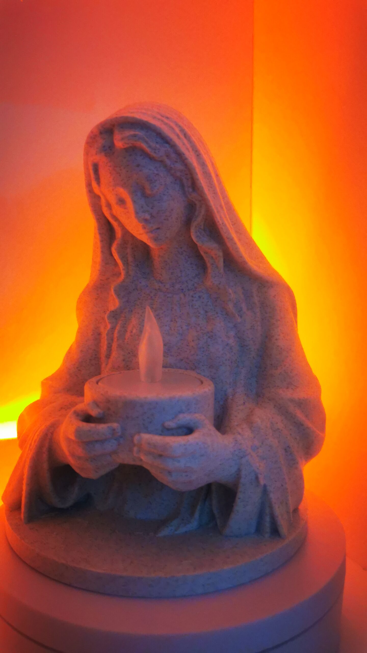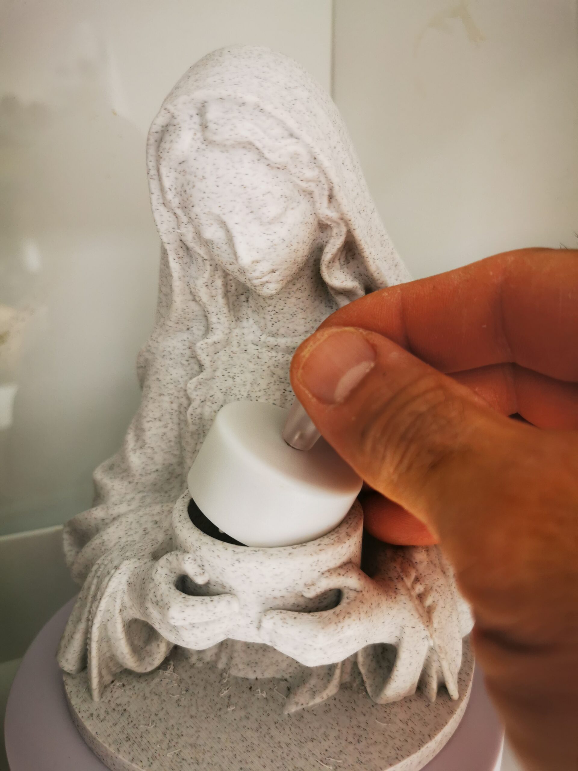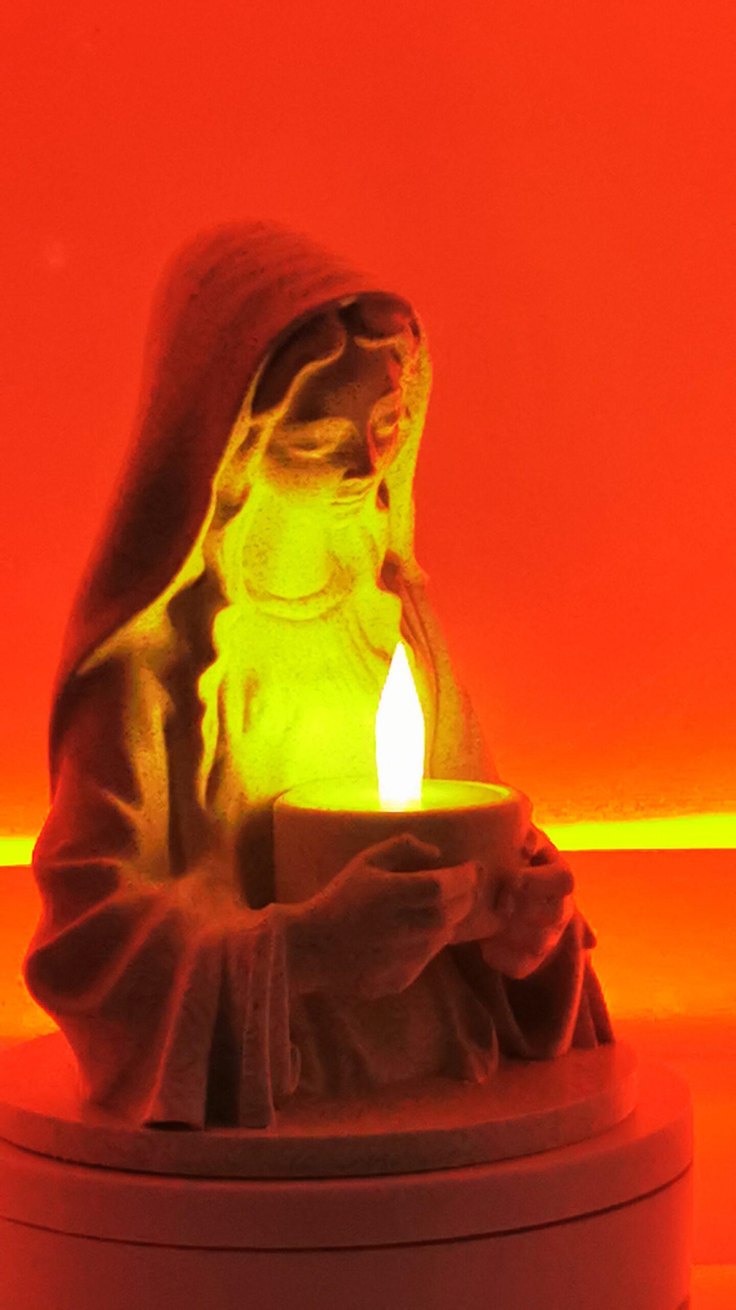 Questa scultura non è solo un oggetto, ma un’esperienza emotiva: una luce che accompagna, un simbolo che consola, una presenza che si fa sentire senza bisogno di parole.