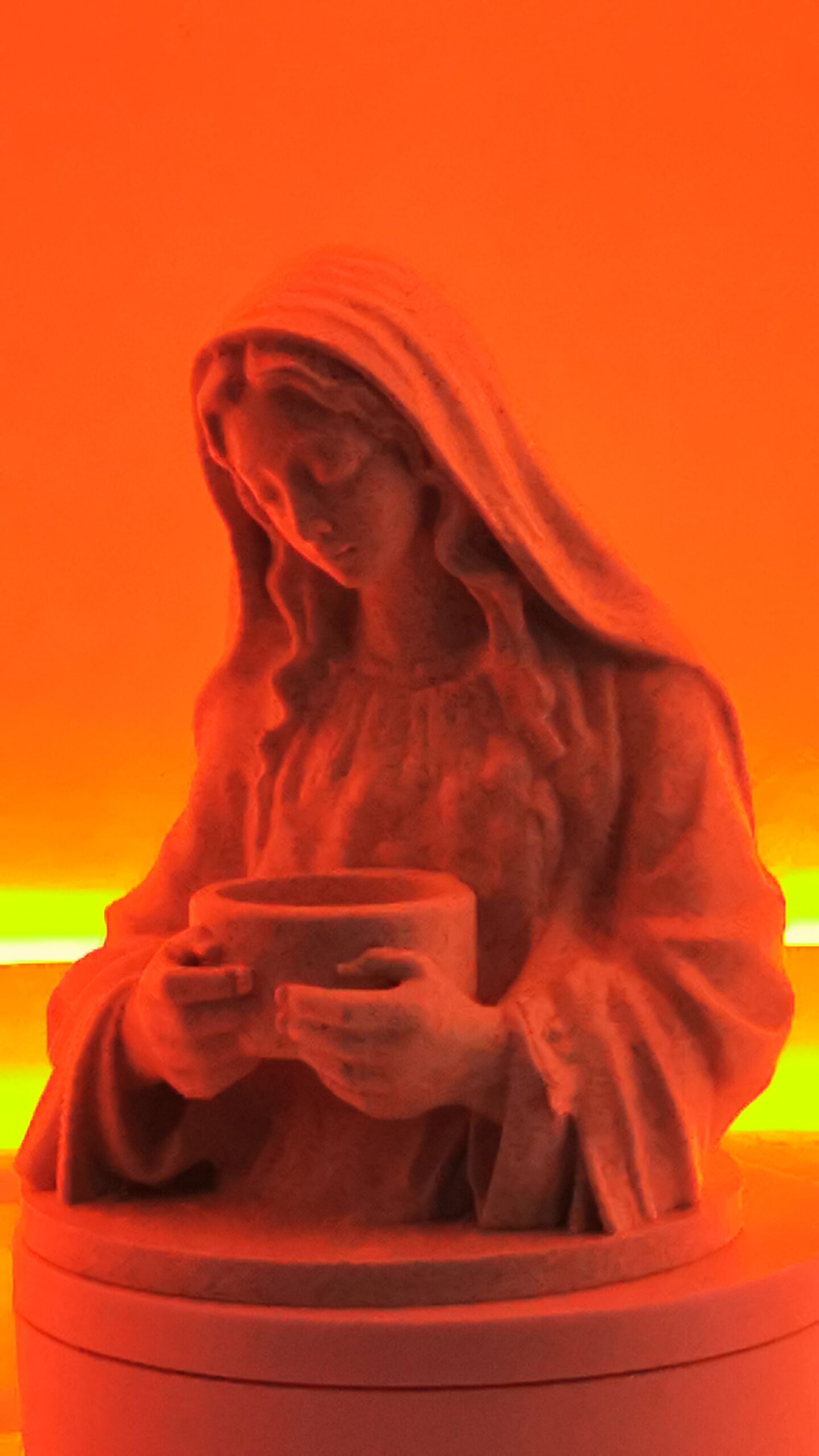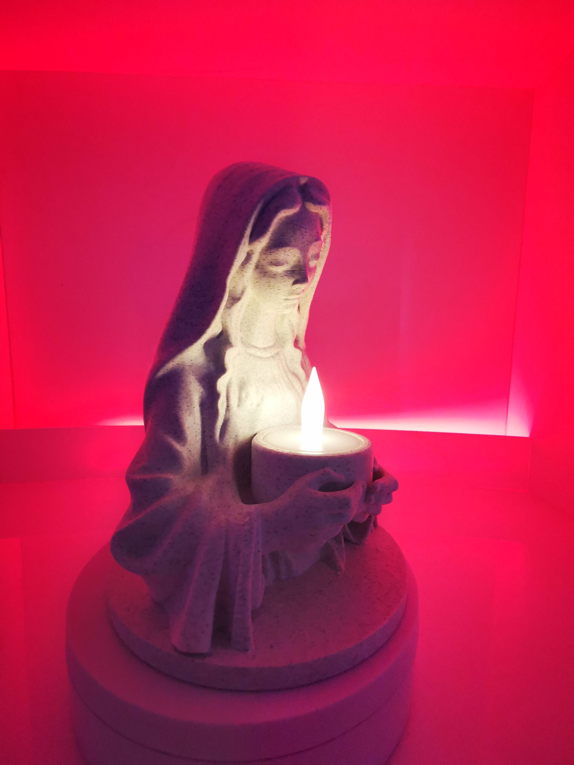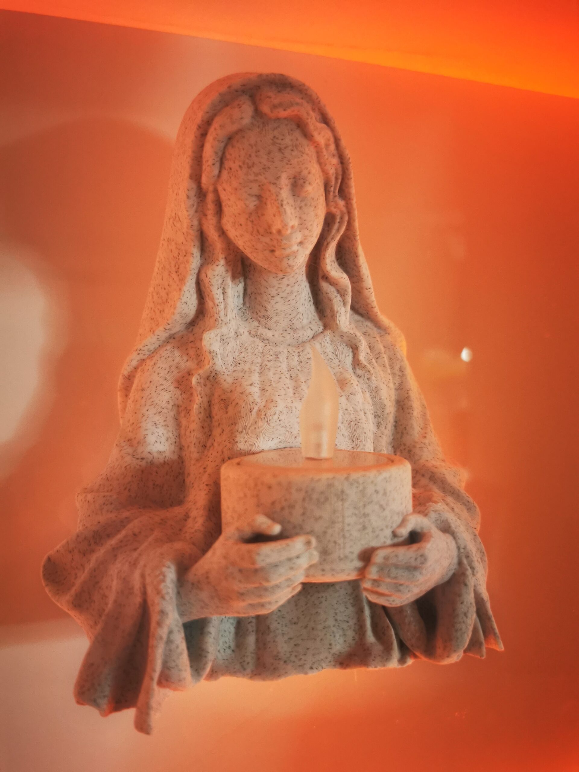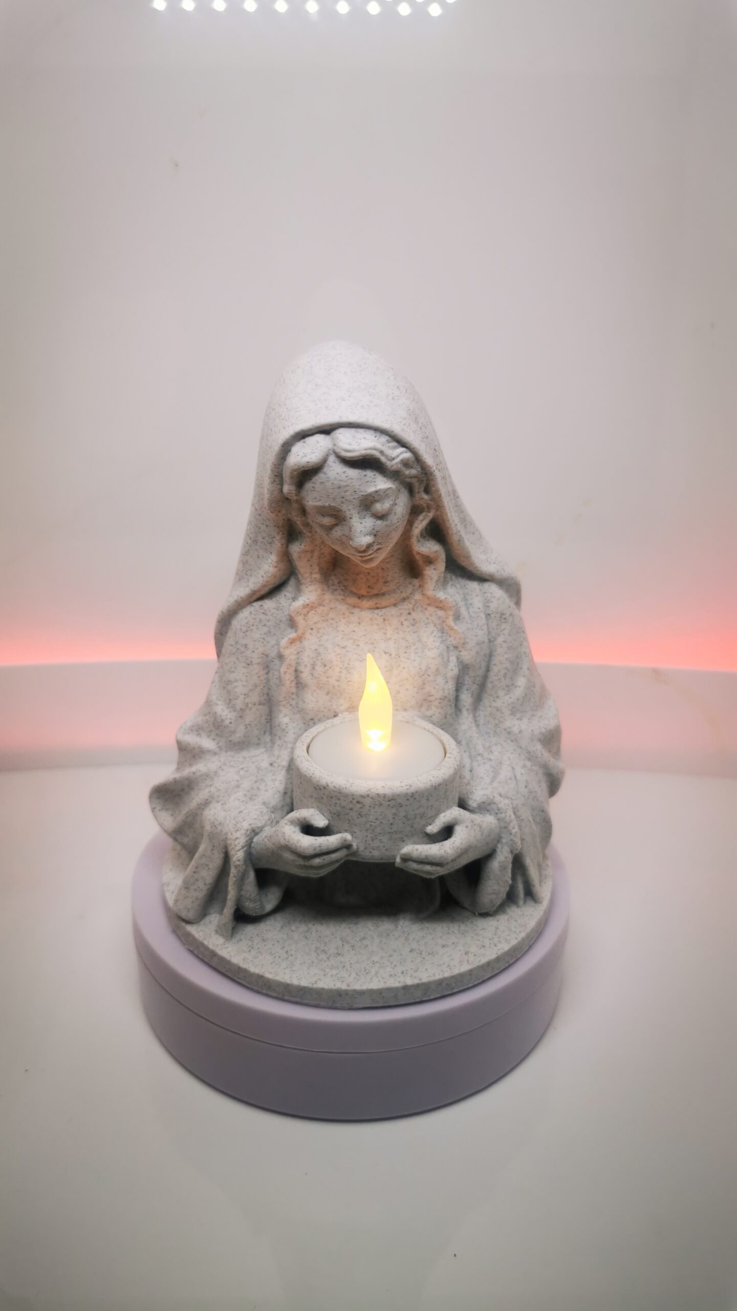 Questa scultura non è solo un oggetto, ma un’esperienza emotiva: una luce che accompagna, un simbolo che consola, una presenza che si fa sentire senza bisogno di parole.