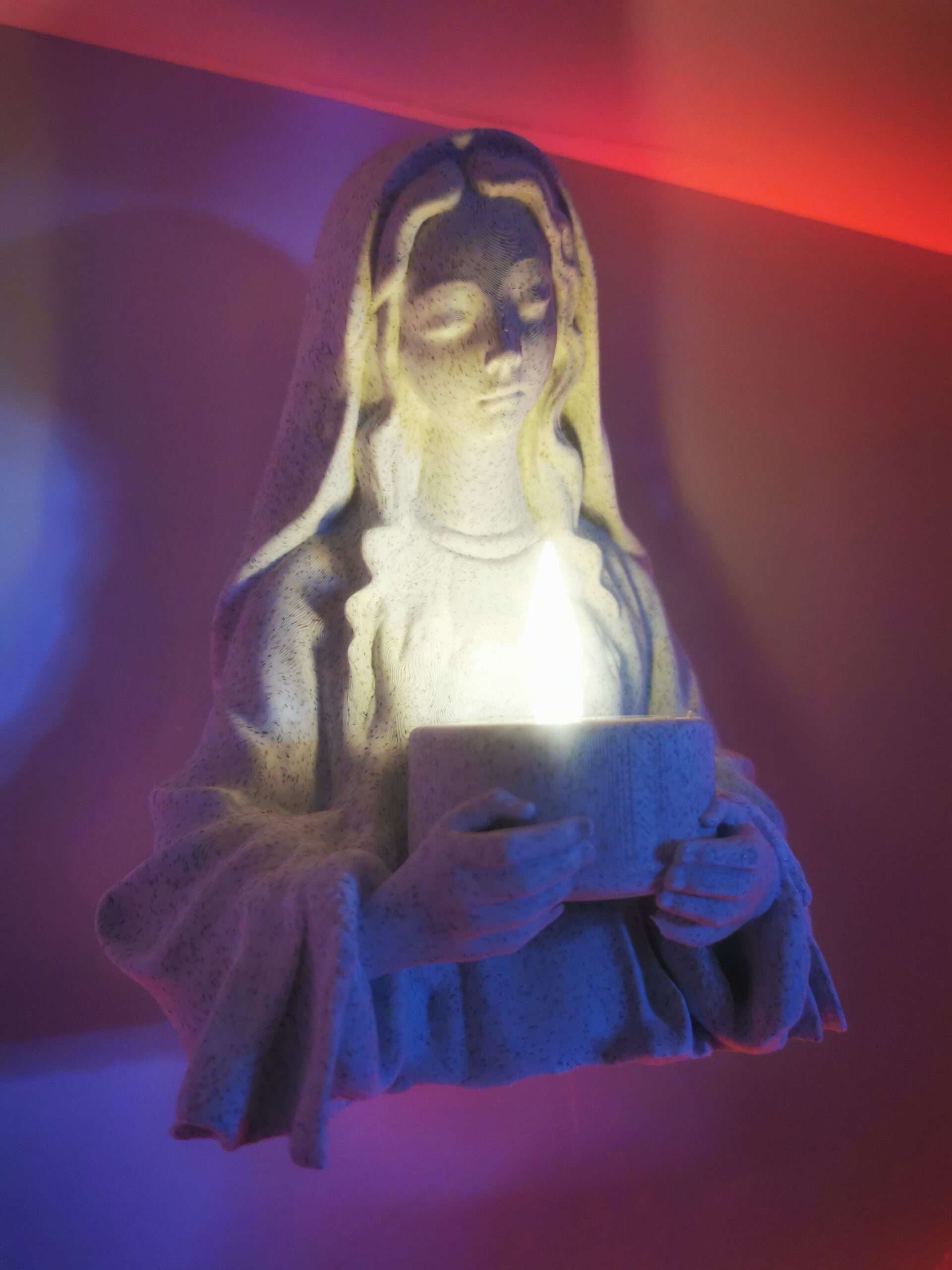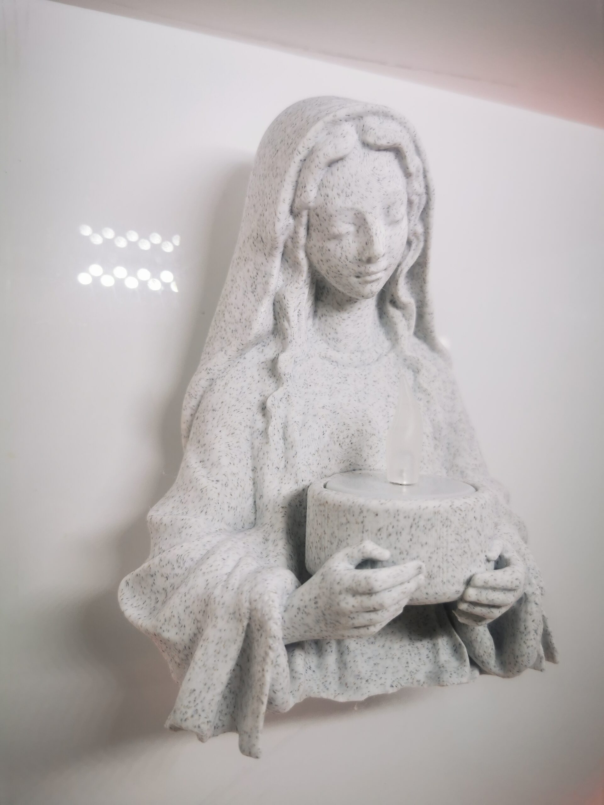 La Madonna del Silenzio è disponibile anche in una versione progettata per il montaggio a parete, pensata per integrarsi con discrezione ed eleganza in ogni ambiente.