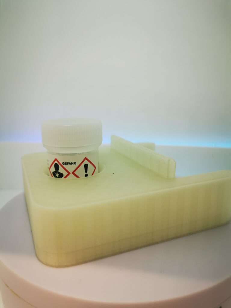 Durch 3D-Modellierung entworfen und mit hochpräzisen Drucktechnologien gefertigt, ermöglicht das System eine perfekte Stabilisierung und strukturierte Organisation von Biopsieproben in allen Arbeitsphasen. Dadurch wird die Effizienz gesteigert und das Fehlerrisiko deutlich reduziert.